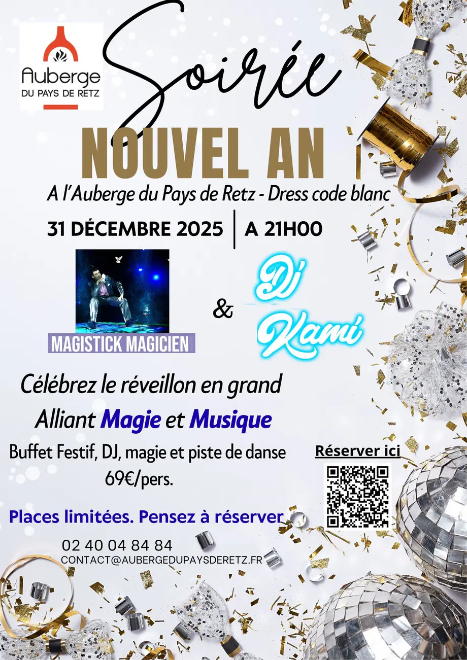 L'auberge du Pays de Retz vous propose un buffet gourmand, la venue du magicien "Magistick" et du "DJ KAMI"