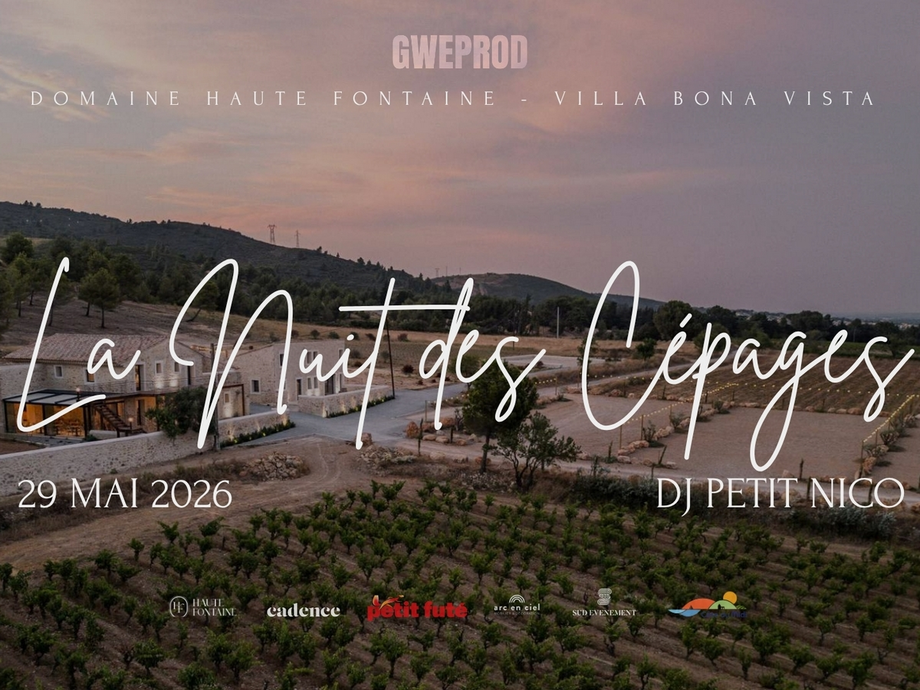 DJ Petit Nico, actif depuis plus de 30 ans, s'associe à Arthur Boivert pour lancer La Nuit des Cépages : une soirée itinérante au cœur des domaines viticoles du Sud de la France.