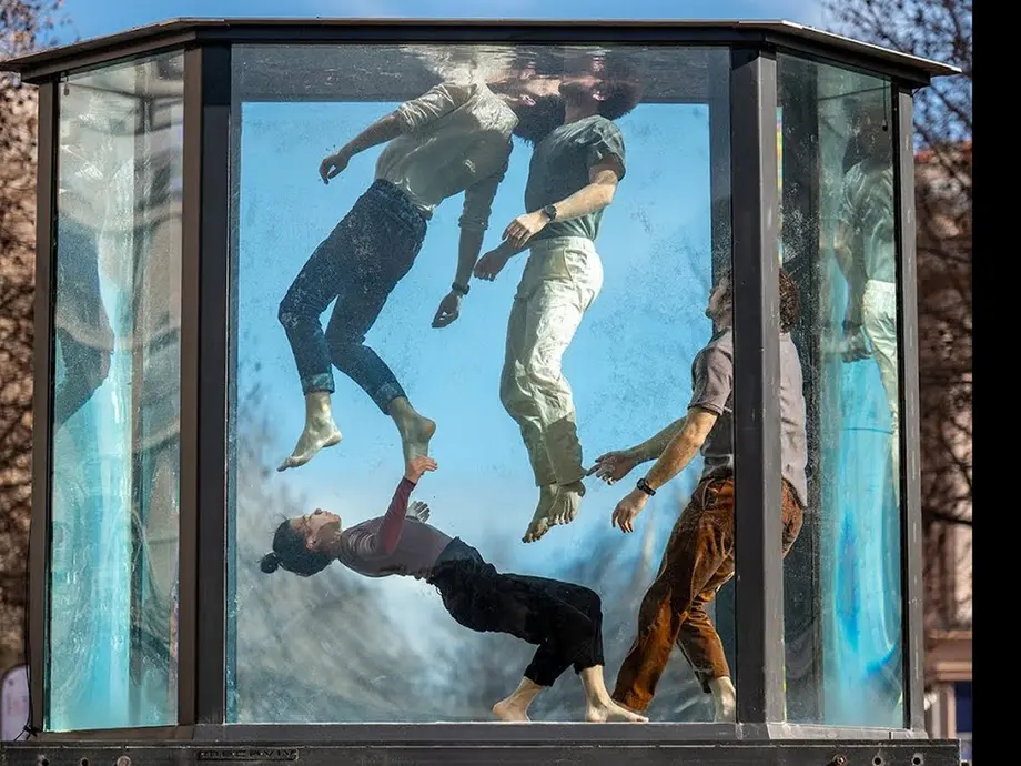 Dans un aquarium géant, quatre artistes interprètent une chorégraphie à la fois pure et fulgurante, inspirée du cycle de l’eau. Un mélange de cirque et de danse d’un genre nouveau, où les corps, en apesanteur, se croisent au ralenti et forment une ronde, tout en synchronisant leur respiration.