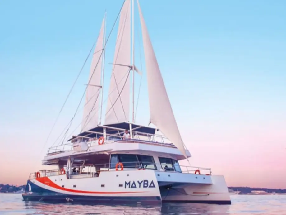 Vous embarquerez à bord d’un lounge boat premium Day One 65, de construction française, mesurant 20 mètres de long et pouvant accueillir jusqu’à 200 passagers. Le bateau dispose d’un pont-solarium de 200 m², de fauteuils en teck, de transats et de larges assises, d’une douche de pont, de sanitaires, d’une sonorisation professionnelle et d’équipements pour activités nautiques.