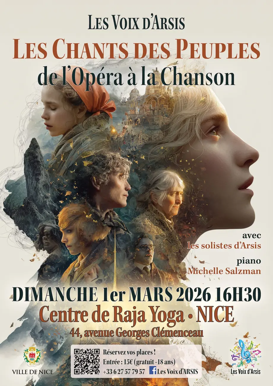 Les Voix d’Arsis vous proposent une expérience musicale pleine de contrastes et d’émotions, portée par des voix aux timbres très différents. Au fil du programme, on passe de l’opéra aux mélodies, des grands élans lyriques aux chansons populaires : un véritable dépaysement culturel, linguistique et musical, avec huit solistes accompagnés au piano par Michelle Salzman.