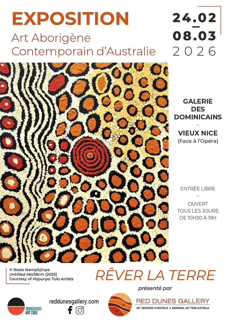L’exposition ‘Rêver la Terre’ vous invite à découvrir une remarquable sélection d’oeuvres d’art contemporain en provenance des communautés artistiques aborigènes d’Australie. Ces peintures nous plongent dans la richesse et la diversité de la mémoire sacrée aborigène transmise de génération en génération depuis des millénaires. Aujourd’hui ces oeuvres nourrissent activement et consciemment cette mémoire ancienne inscrite dans la terre, cette terre spirituelle que les ancêtres créateurs ont parcourue au Temps du Rêve. L’exposition est présentée par Céline Emery-Demion, galeriste franco-australienne, passionnée d’art et de culture aborigènes depuis de nombreuses années.