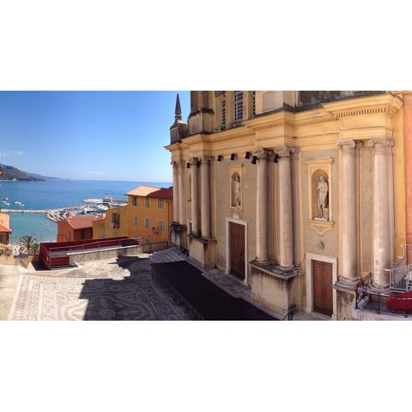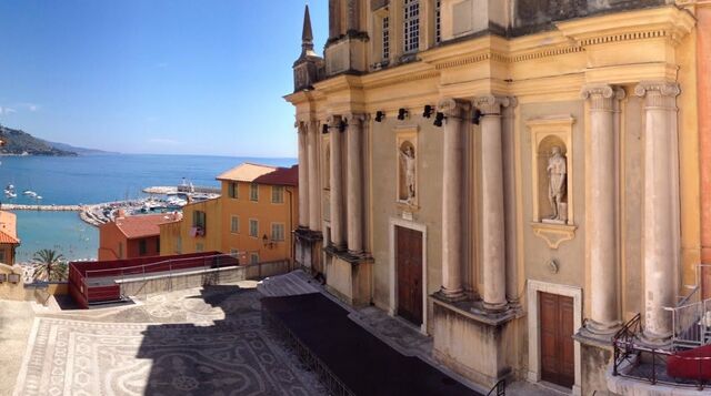Le Festival de musique de Menton 2026 se déroule principalement sur le parvis de la Basilique Saint-Michel Archange, offrant une vue imprenable sur la mer Méditerranée.