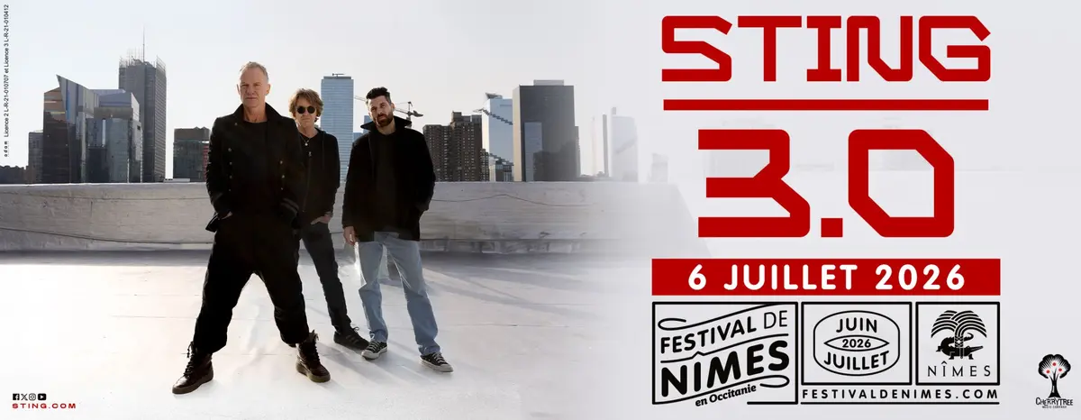 Sting sera en concert aux Arènes de Nîmes le 6 juillet 2026 à 20h30 avec sa tournée STING 3.0 : un set en formation trio (Dominic Miller à la guitare, Chris Maas à la batterie) pour revisiter ses plus grands titres dans l’écrin mythique des Arènes de Nîmes.