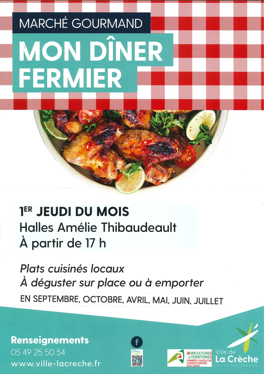 Le marché gourmand « Mon Dîner Fermier » se tient sous les halles de La Crèche le 1er jeudi du mois, à partir de 17 h.