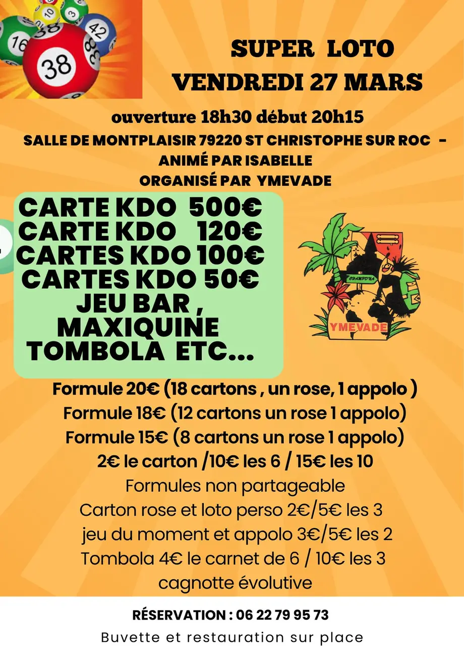 Super lotosDu 17/04/2026 au 18/04/2026Mauzé-sur-le-Mignon2 Supers lotos animés par Phil lotos