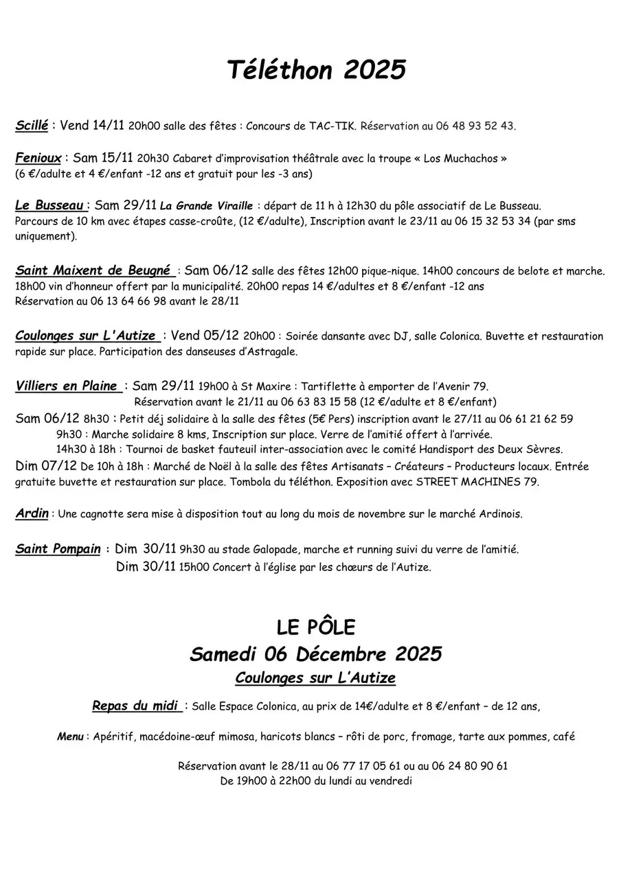 Téléthon : Parcours marcheursLe 06/12/2025 Coulonges-sur-l'AutizeParcours marcheurs — le 6 décembre — Manifestations itinérantes ouvertes à tous