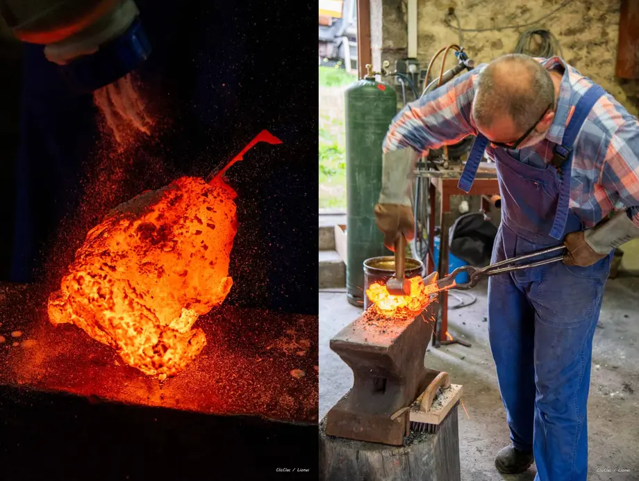 - Production d’acier de grappage : construction d’un four de grappage, choix et tri des matériaux ferreux, grappage et compactage de l’étoffe. Gestion du foyer pour des résultats différents.