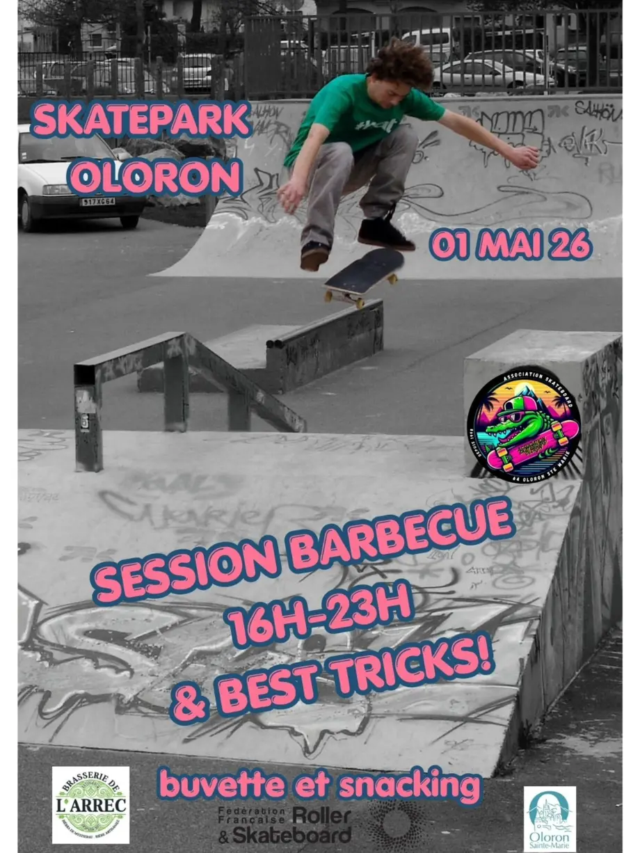 L'association skateboard d'Oloron organise une session skate barbecue. Au programme de cet événement : une session « skate libre », qui donnera la possibilité de rider à fond toute l'après-midi. Puis, à 19 h, se tiendra un concours de figures, le « Best Tricks Contest ». Une buvette et une plancha assureront une offre de restauration sur place. Musique et bonne ambiance garanties.
