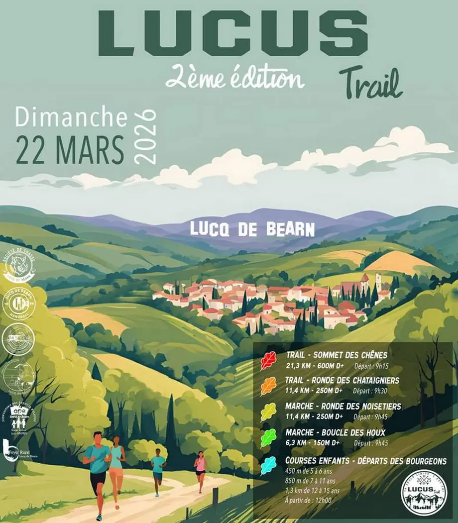 - 09h30 : Départ du trail 11,4 km. Parcours accessible pour découvrir le trail, avec un passage en sous-bois et une vue magnifique sur la chaîne des Pyrénées.