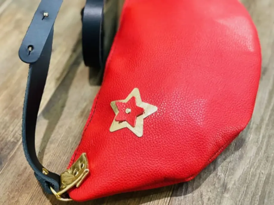 - Apprentissage du découpage et de l’assemblage du cuir en suivant des patrons spécifiques pour créer une petite sacoche banane