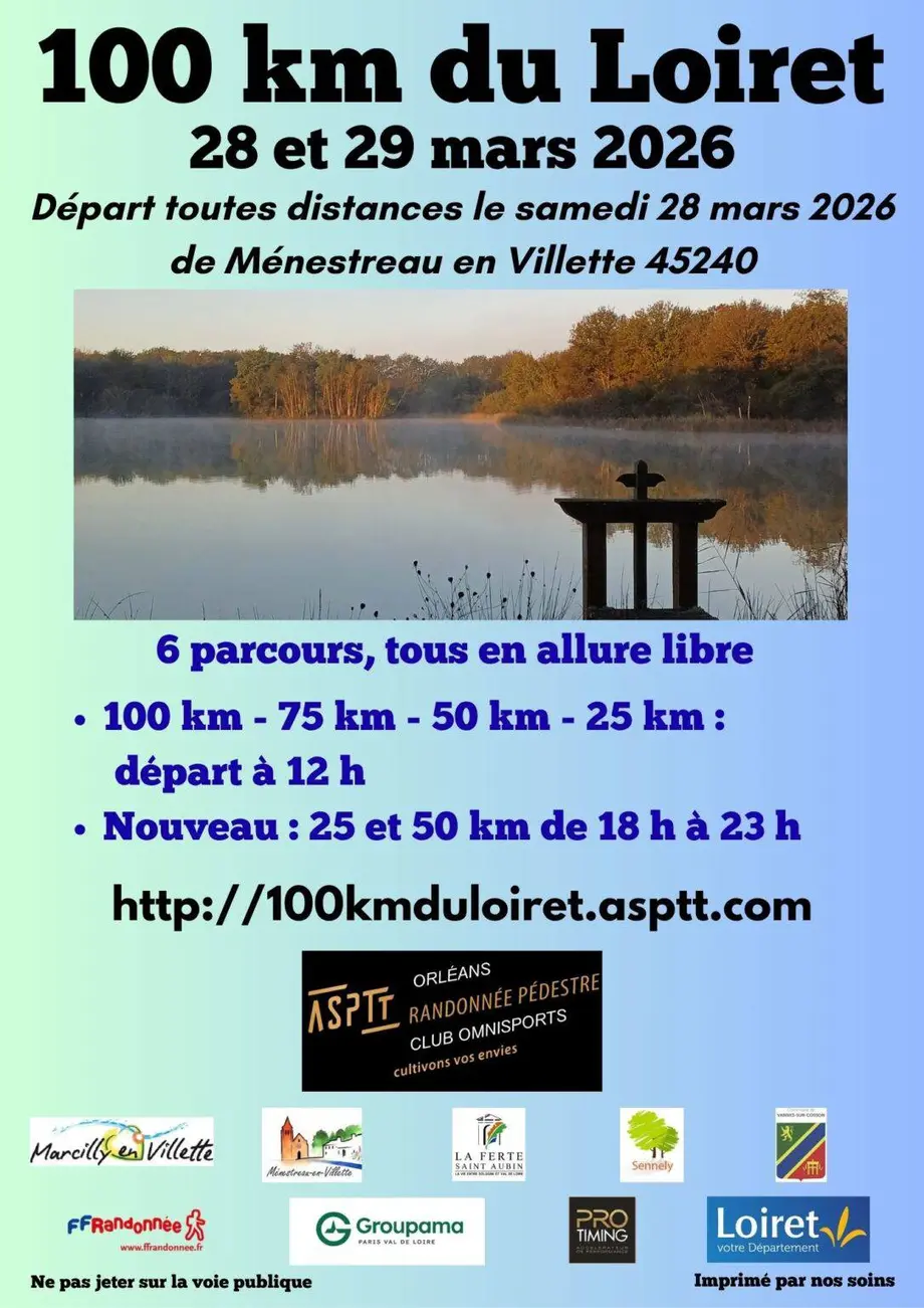 Rendez-vous incontournable des amateurs de randonnée longue distance, le 100 km du Loiret revient pour une nouvelle édition les 28 et 29 mars 2026, au cœur des paysages naturels du Loiret et de la Sologne.