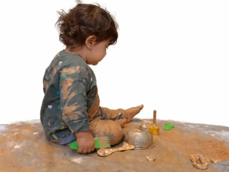 À travers différentes expériences sensorielles, les tout-petits manipulent l’argile sous toutes ses formes : solide, liquide ou colorée. Ils peuvent malaxer, presser, étirer, verser ou encore laisser leurs empreintes, découvrant ainsi les multiples possibilités de cette matière.
