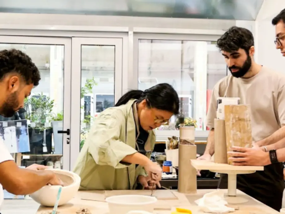 Sous la verrière du hall des Grésillons à Gennevilliers — un grand espace lumineux et inspirant — Yiyan vous ouvre les portes de son atelier de céramique, un lieu où la terre prend vie entre les mains des créateurs. Accompagnée de Tommy, son fidèle compagnon à quatre pattes, elle vous invite à vivre une expérience artistique unique autour du modelage.