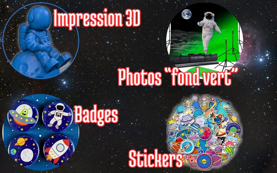 Venez découvrir et tester nos 4 stands d'ateliers créatifs et numériques sur le thème de l'espace et des étoiles, et repartez avec des cadeaux de l'espace !