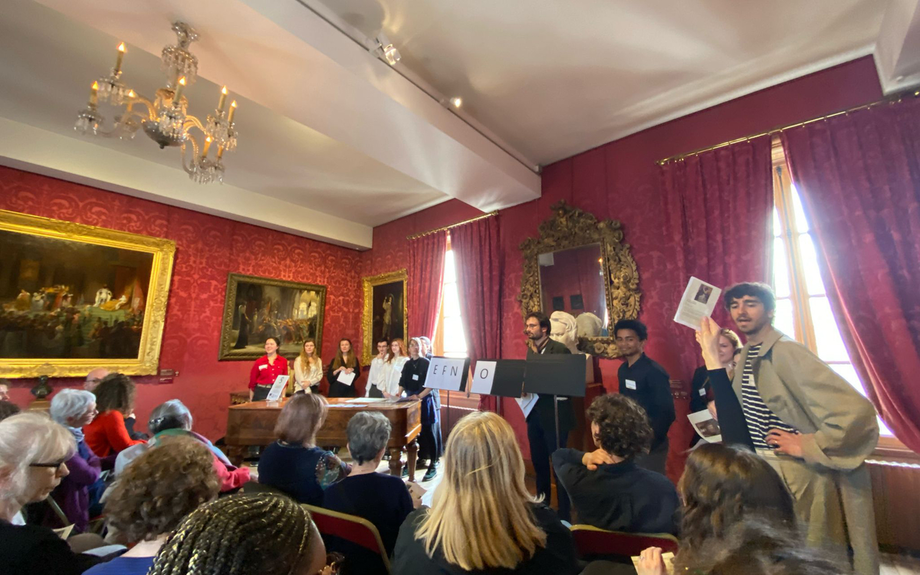 Après une série d’ateliers menés par l’écrivaine Sarah Bussy au musée, les binômes de personnes réfugiées et de personnes bénévoles imaginent une lecture-spectacle inspirée par l’exposition « Hugo décorateur ».