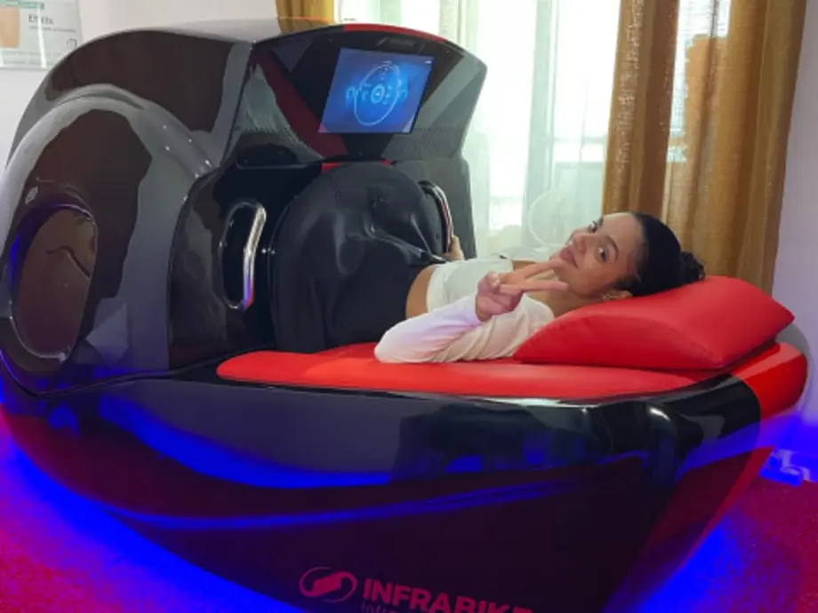 La séance de gym métabolique dure 30 minutes : vous serez dans un appareil qui émet des rayons infrarouges et réchauffe votre corps de 2 °C. À la fin de la séance, vous aurez dépensé 800 calories en restant allongé.
