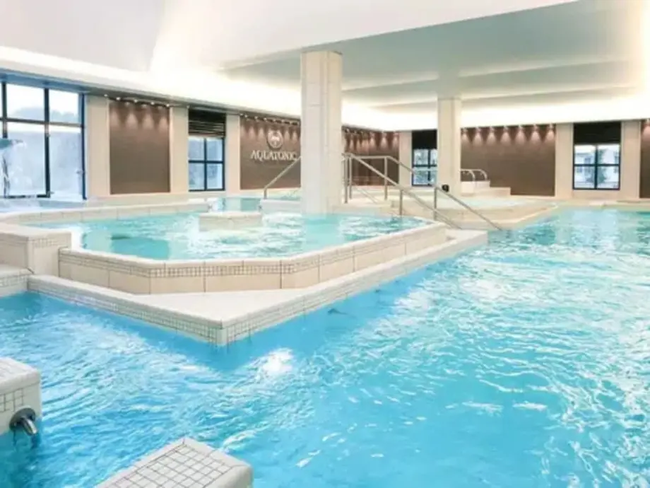 - L’accès au parcours Aquatonic : un circuit sensoriel d’eau chaude et froide avec jets massants, bains à remous et douches.