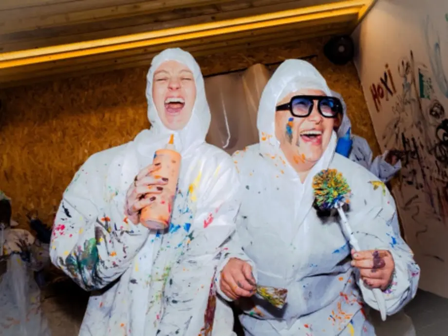 Après avoir enfilé leurs combinaisons, les participants choisissent ensemble les couleurs, l’ambiance musicale et se lancent dans une création collective ou individuelle, sans règles ni jugement.