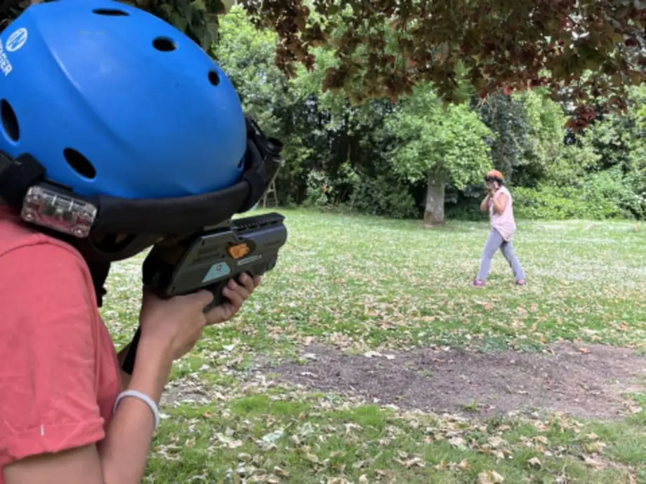 C’est un jeu de stratégie et de tir 100 % fun ! Chaque joueur est équipé d’un fusil laser et d’un casque à capteurs. Le but ? Toucher un maximum d’adversaires pour faire gagner ton équipe. Pas de projectiles, pas de douleur, juste de l’adrénaline et des rires.