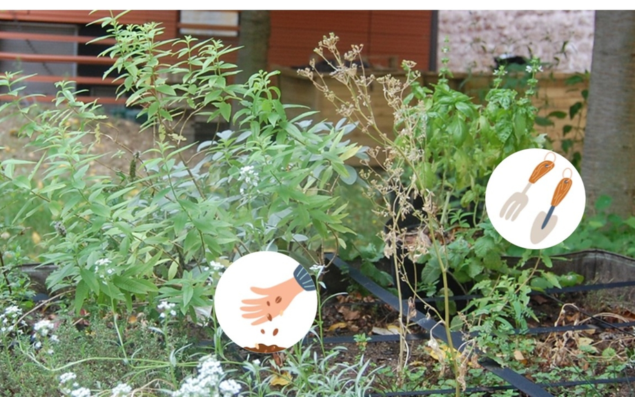 Chaque année, les plantes ont besoin d’un peu de soin pour bien grandir. Avec des gants et de petits outils, nous nous occuperons du jardin.