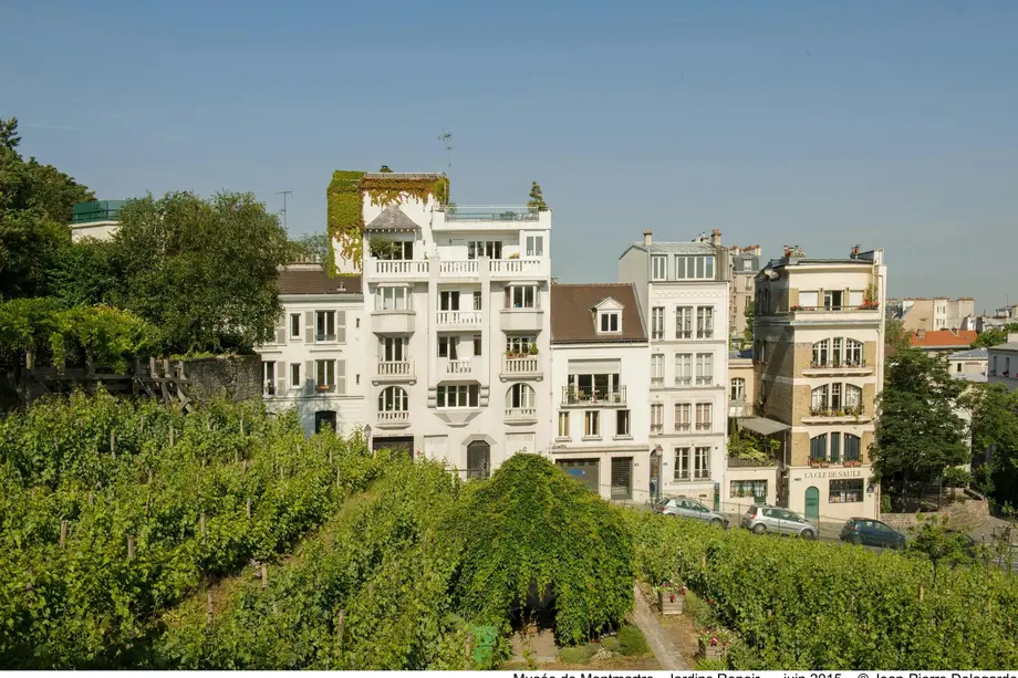 Vue des vignobles du Clos Montmartre depuis les jardins Renoir.