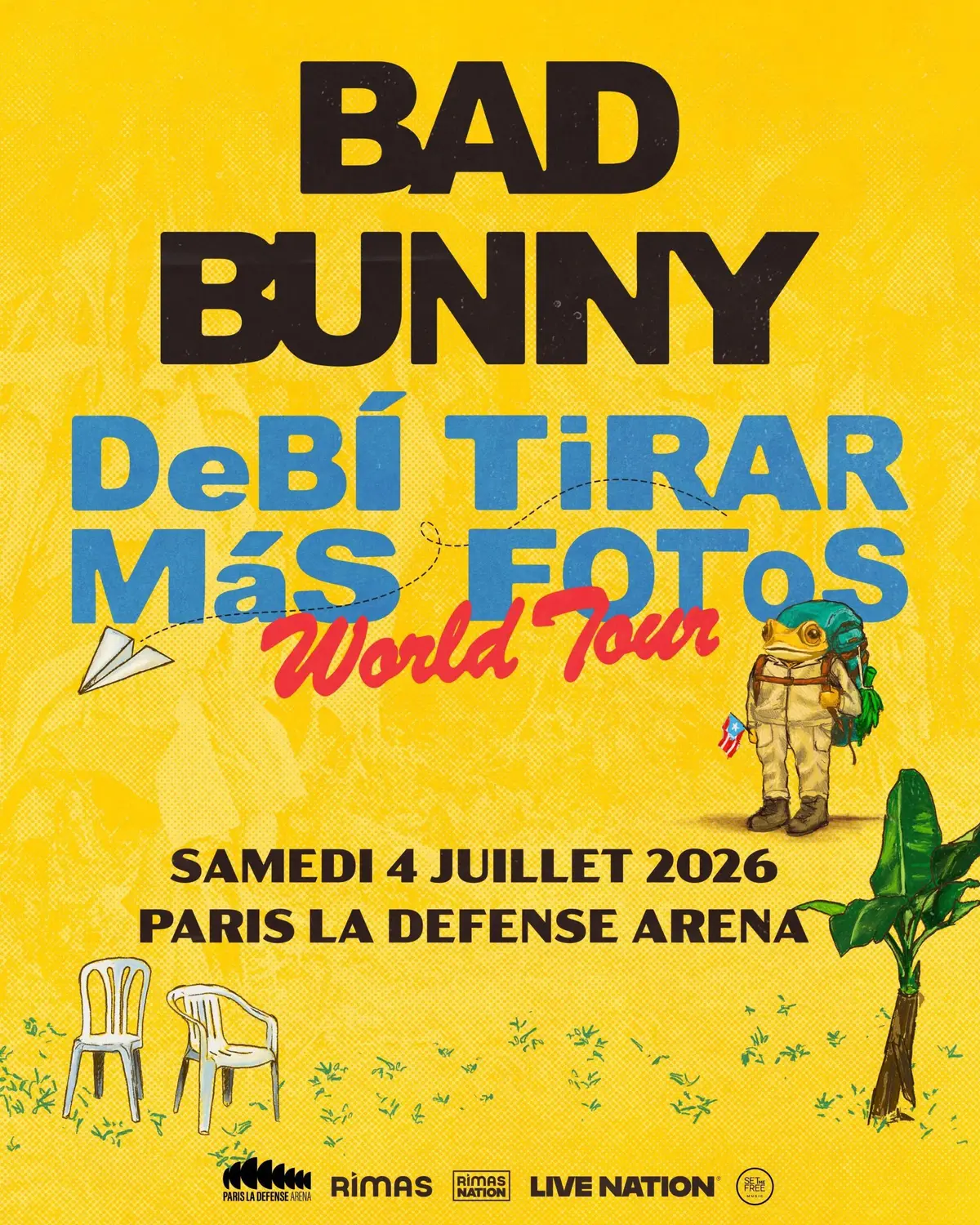 La scène musicale parisienne s'apprête à vibrer au rythme du reggaeton ! Bad Bunny, la superstar portoricaine qui enflamme les classements mondiaux, posera ses valises à Paris La Défense Arena les 4 et 5 juillet 2026 dans le cadre de son "DeBÍ TiRAR MáS FOToS World Tour". Un concert en France qui promet d'être l'un des événements musicaux les plus attendus de l'année.