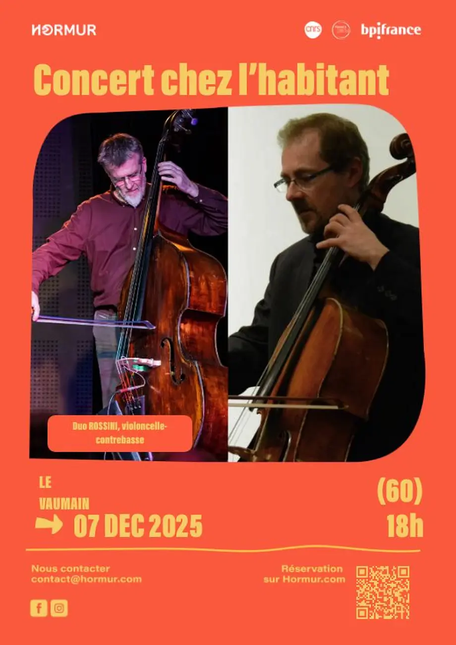 Avis aux amateurs de musique classique et aux curieux en quête de nouvelles expériences ! Le 7 décembre, la Maison à la campagne du Vaumain ouvre ses portes pour un concert intimiste et chaleureux. Rémi Seguin au violoncelle et Fabrice Hélias à la contrebasse vous proposent un voyage musical allant du baroque au XXème siècle. Ces artistes confirmés partagent une complicité exceptionnelle qui saura toucher votre cœur. Profitez de l'occasion pour vivre un moment unique dans un cadre accueillant, où la proximité avec les artistes rendra l'expérience encore plus mémorable. Les places sont limitées, alors ne tardez pas à réserver la vôtre pour soutenir l'art et les artistes.