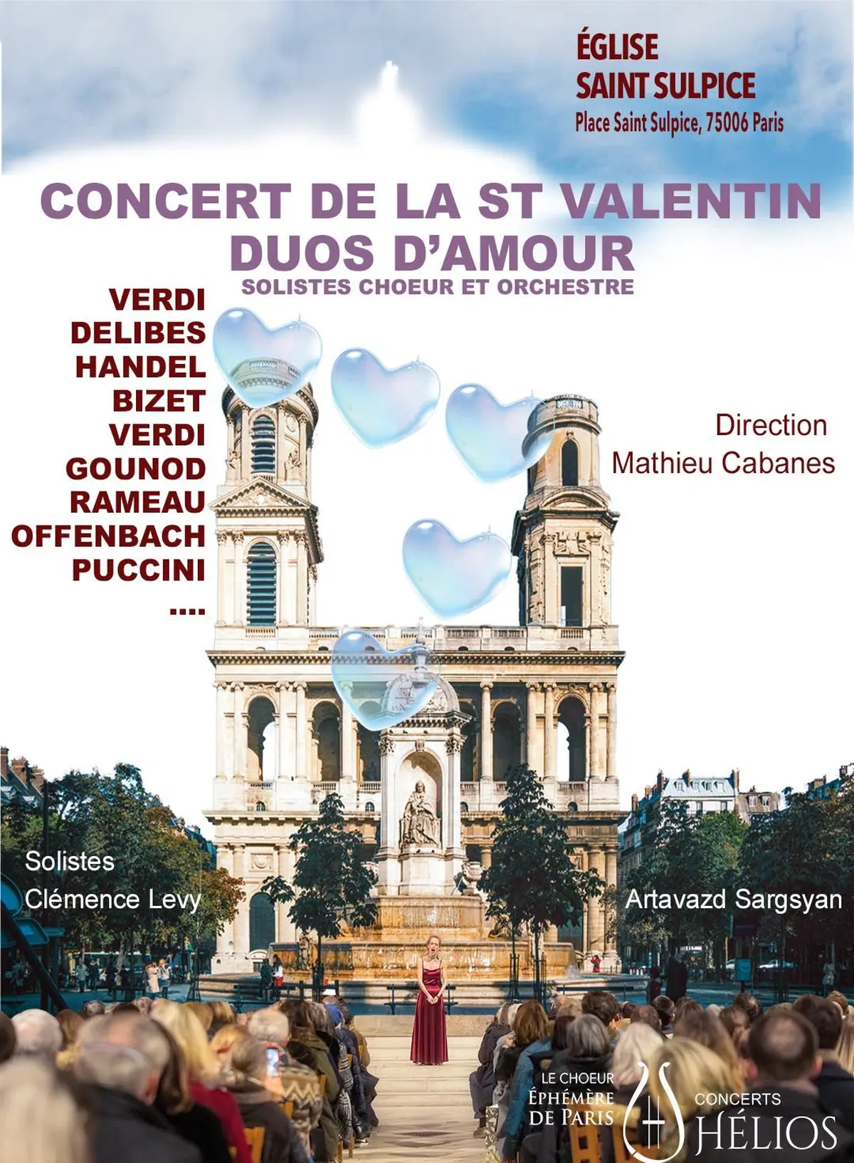 Le vendredi 14 février 2026, l’iconique Église Saint-Sulpice, au cœur de Paris, accueille une soirée musicale d’exception dédiée aux plus beaux duos et chœurs d’amour de l’opéra. À l’occasion de la Saint-Valentin, l’Orchestre Hélios, accompagné du Chœur Éphémère de Paris, propose un concert romantique et immersif, sous la direction de Mathieu Cabanes. Une expérience musicale raffinée, pensée pour sublimer l’émotion dans un cadre patrimonial prestigieux.