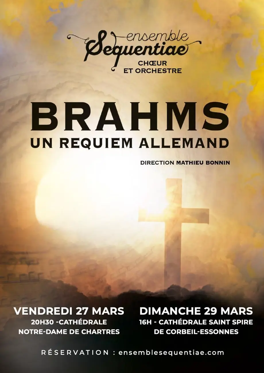 En ouverture de soirée, le Chœur Sequentiae propose deux pages a cappella de Mendelssohn et Bruckner, offrant une introduction tout en pureté et en profondeur. L’Ensemble fera ensuite entendre l’Élégie de Gabriel Fauré, dans sa version orchestrale, méditation intime et lumineuse portée par le chant profond du violoncelle solo Lucien Debon. Enfin, chœur et orchestre uniront leurs voix et leurs couleurs pour donner naissance à Rapsodie, une création de Maxence Grimbert-Barré, écrite spécialement pour l’Ensemble Sequentiae. Ein deutsches Requiem, est cette année la production phare de l’Ensemble Sequentiae. Brahms a lui-même choisi les textes allemands de ce Requiem dans la Bible de Luther, ce qui en fait une œuvre innovante et originale. Ecrit pour les vivants qui restent et souffrent plus que pour les morts, le requiem allemand est une œuvre consolatrice entre douleur et espoir, portée par un orchestre lumineux et un choeur au rôle essentiel.