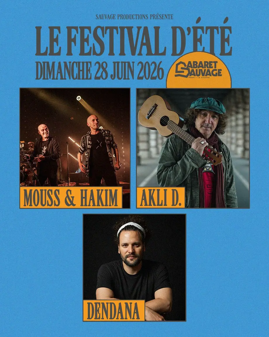 Trois concerts en une soirée, dimanche 28 juin, à l’occasion du Festival d’Été du Cabaret Sauvage avec Mouss & Hakim, AKLI D. et Dendana.
