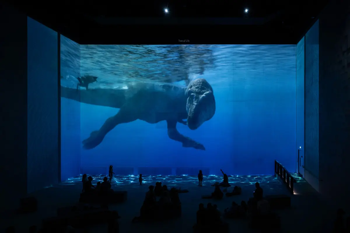 Conçue par 59 Studio et adaptée en collaboration avec Mike Gunton (BBC Studios), cette exposition immersive mise sur les projections monumentales typiques de l’Atelier des Lumières pour offrir une immersion totale. Plusieurs séquences révèlent aussi « les coulisses de la préhistoire » : le rôle des fossiles, les schémas évolutifs ou encore la reconstitution scientifique des espèces disparues.