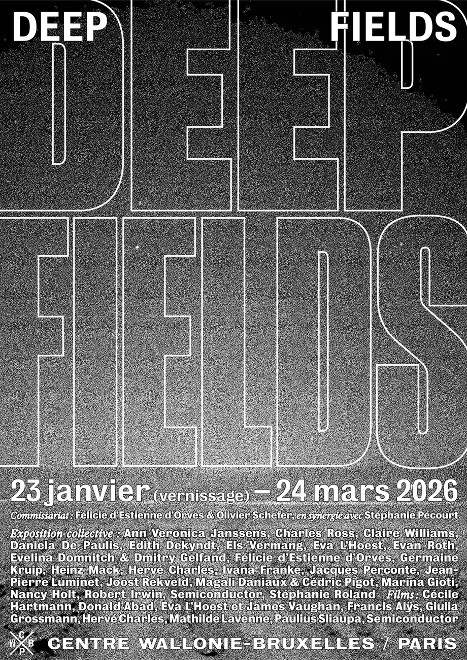 Deep Fields réunit des artistes qui sondent et explorent les champs profonds : des paysages lointains et désertiques aux champs mobiles et instables de particules. Confrontés à l’irreprésentable et à l’invisible, ils interrogent la perception, sans cesse renvoyée à ses propres limites, à ses cadres et ses frontières. Leurs œuvres sont des traces d’événements, les échos matériels et psychiques d’horizons traversés, des champs d’énergie dont le corps reste partie prenante. Ce ne sont plus des objets isolés ni des images arrêtées, mais des oscillations, des vibrations magnétiques et lumineuses.