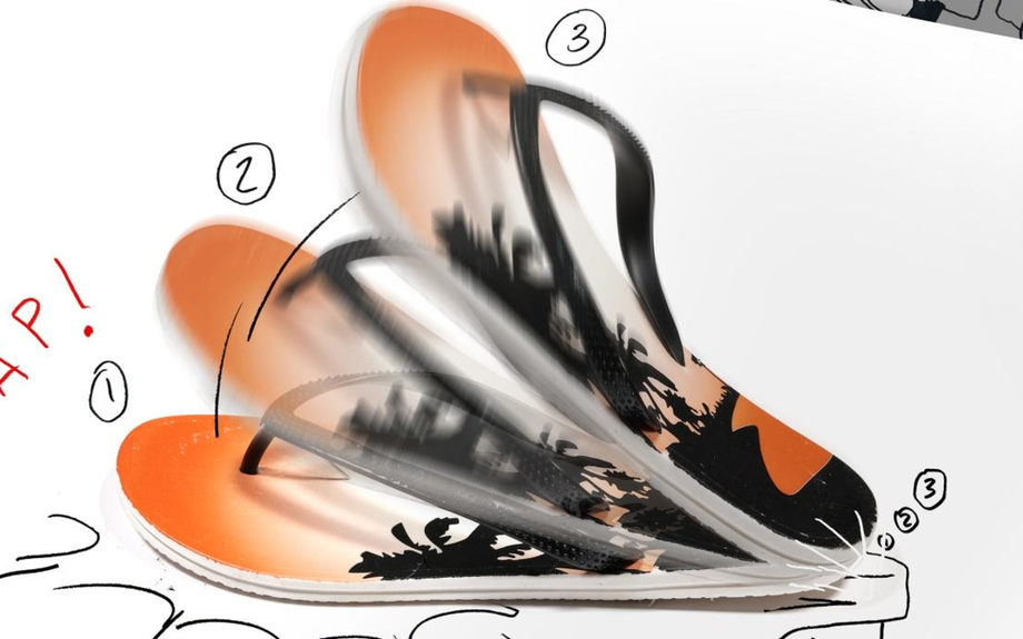 Meriem Bennani explore le vivre ensemble et la place de l’individu dans la collectivité. Tantôt en chœur, tantôt en solistes, à l’unisson ou en réponse les unes aux autres, ces tongs sans corps évoquent les individus d’une foule en mouvement, dans une manifestation, un stade ou une cérémonie de dakka marrakchia. Geste simple et banal, ce claquement de tong, une fois démultiplié, unit le groupe dans une même pulsation, celle d’une force qui dépasse l’individu.