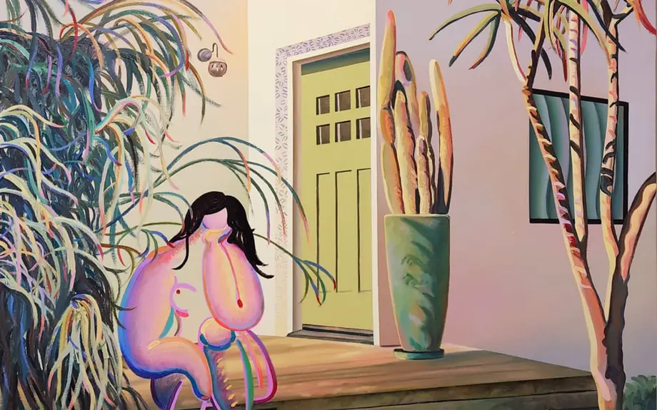 Ses œuvres oscillent entre solitude et réconfort, brouillard et éclat, comme le souvenir flou d’un lieu qui n’a peut-être existé que dans un rêve. Sa palette de mauves doux, de jaunes chauds et de bleus profonds évoque les paysages de son passé : les couchers de soleil californiens et la lumière délicate du Japon.