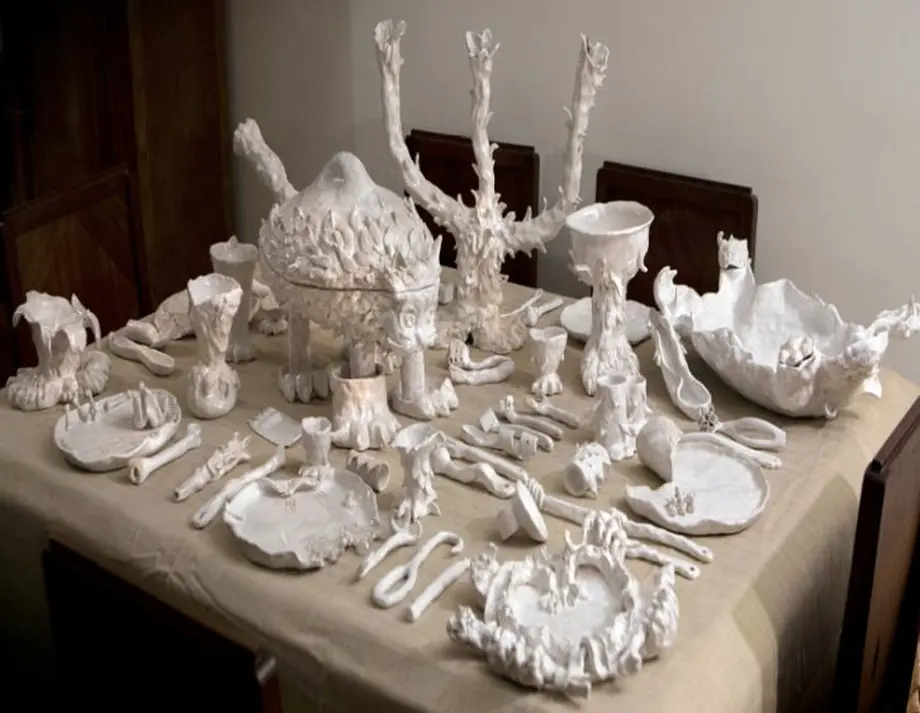 Les œuvres présentées se caractérisent par une ornementation foisonnante qui puise dans les références rococo et Art nouveau. Le collectif, composé d'Olga Petrunenko, Ilya Voznesensky, Evgeny Kukoverov et Oleg Eliseev, développe des formes organiques avec des plis et excroissances qui transforment la surface des objets. Ces créations déplacent la frontière entre objet d'usage et œuvre d'art, proposant une expérience plastique qui questionne notre rapport aux rituels et à l'art dans le quotidien. Découvrez d'autres expositions à Paris pour enrichir votre parcours culturel.