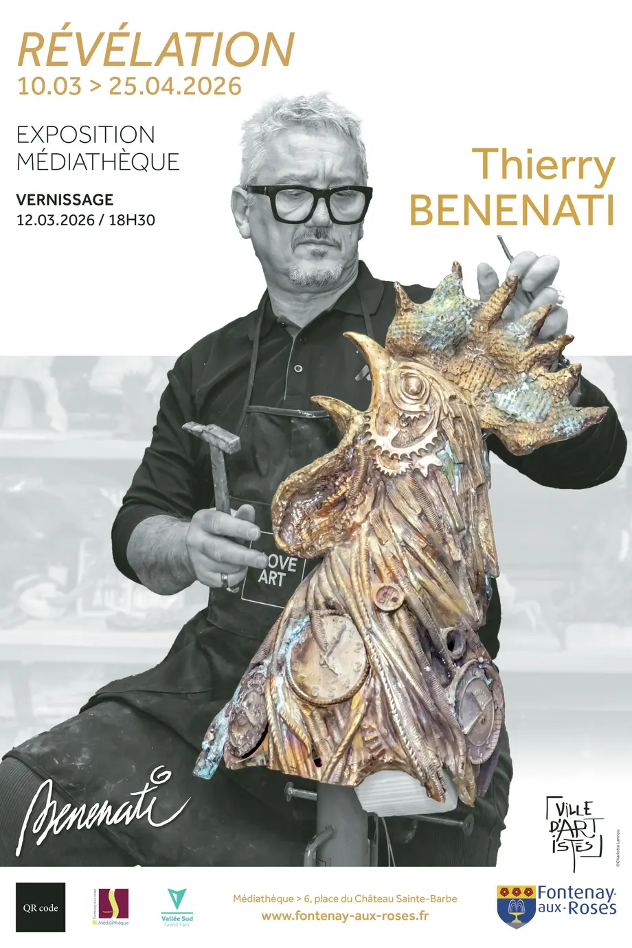 La Médiathèque de Fontenay-aux-Roses accueille du 10 mars au 25 avril 2026 l’exposition Révélation, consacrée au sculpteur Thierry Benenati, dans le cadre du Printemps de la Sculpture.