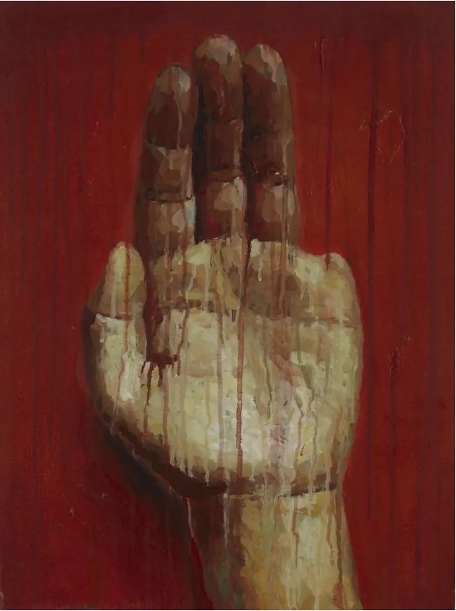 © QI Sheng, My left hand, 2006 — Huile sur toile, 59,3 x 41, 5 cm © Fondation Francès