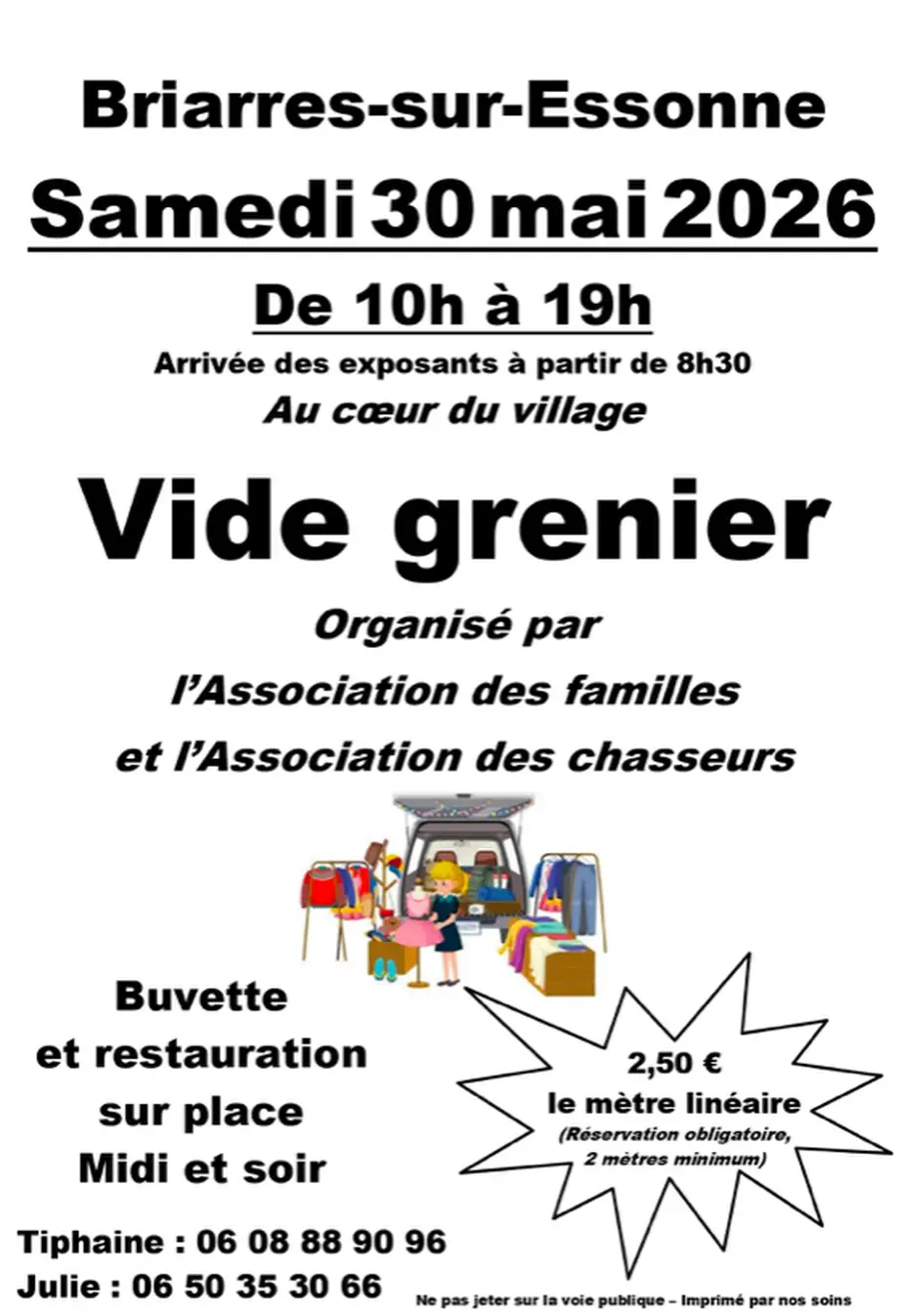 Le samedi 30 mai 2026, la commune de Briarres-sur-Essonne se transforme en un vaste marché à ciel ouvert à l'occasion de son vide-grenier traditionnel. Organisé conjointement par l'Association des familles et l'Association des chasseurs, cet événement investit le cœur du village pour offrir une journée de chine exceptionnelle de 10 h à 19 h.