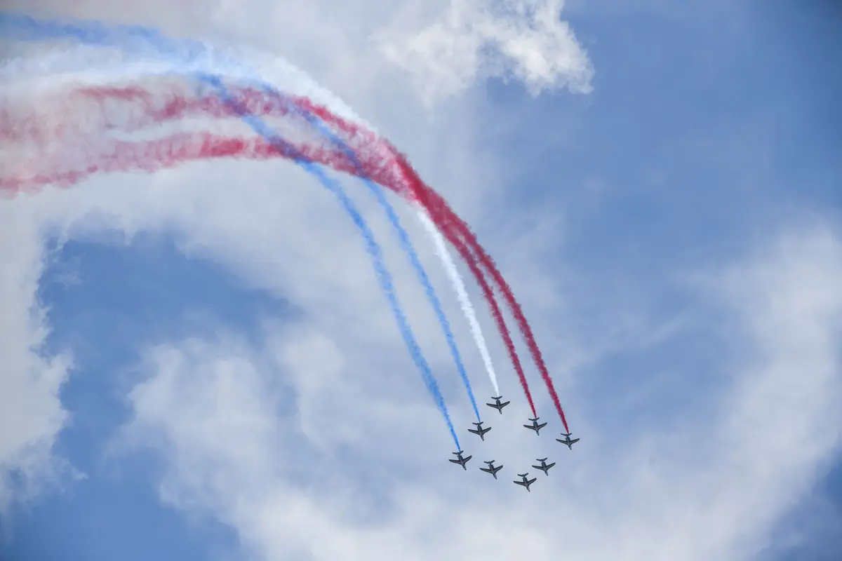 Démonstration en vol de la Patrouille de France au Salon du Bourget 2023