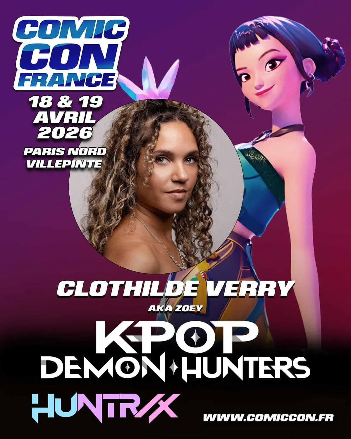 La Comic Con France 2026 s’offre un moment musical et pop culture très attendu avec la venue des K-Pop Demon Hunters. Les comédien·ne·s de doublage français·es du film d’animation à succès viendront à la rencontre du public. Au programme : concert, conférence et dédicaces.