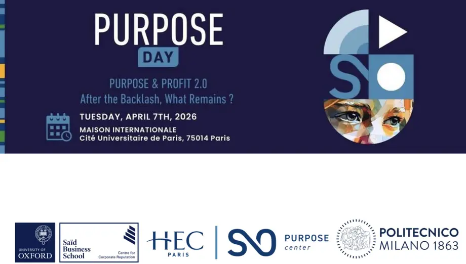 Nous avons le plaisir de vous inviter à la quatrième édition du HEC S&O Purpose Day, organisé par le Purpose Center de l'Institut HEC Paris S&O en partenariat avec le Centre pour la réputation des entreprises de l'Université d'Oxford et le Politecnico di Milano. L'événement aura lieu le 7 avril 2026 à la Maison Internationale, Cité universitaire de Paris.
