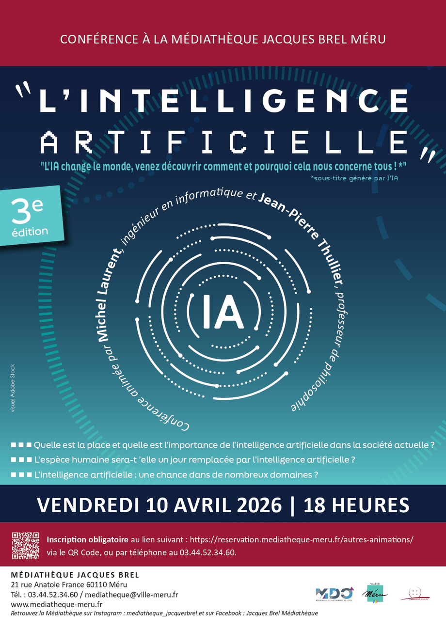 Venez assister à notre troisième conférence : « L’intelligence artificielle : l’IA change le monde, découvrez comment et pourquoi cela nous concerne tous ! », le vendredi 10 avril, à partir de 18 h.