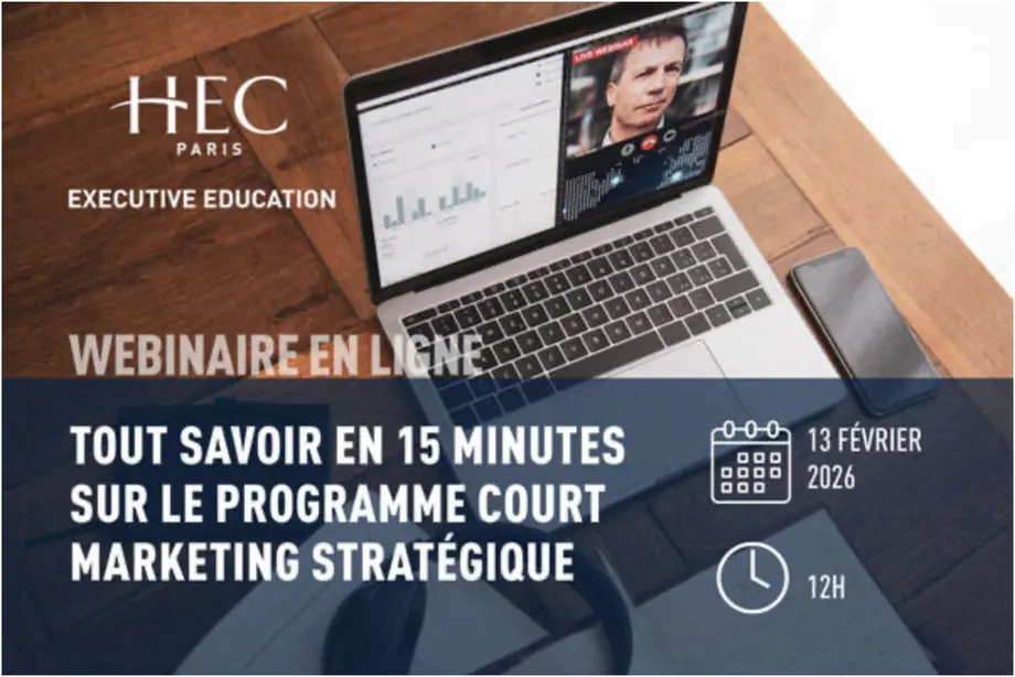 HEC Paris Executive Education a le plaisir de vous convier à une session d’information autour du Programme Court Executive Marketing Stratégique, le vendredi 13 février 2026 à 12h pour une présentation pour tout savoir en 15 minutes.