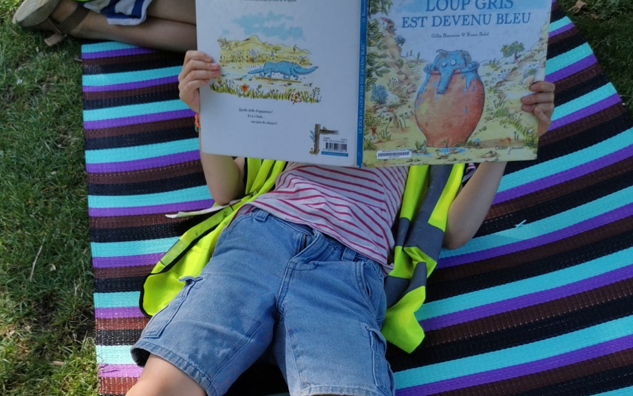Grands et petits, tous les mardis et jeudis du 7 au 30 juillet, de 10 h à midi, venez nous retrouver place des Vosges pour lire ensemble, les pieds dans l'herbe !