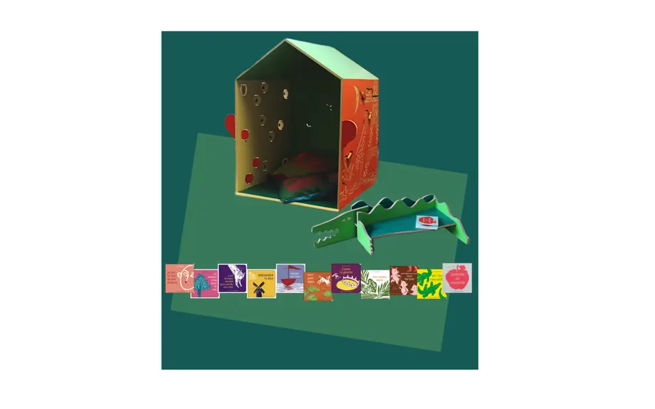 Dessinée et conçue par Julia Chausson, cette installation originale est constituée de modules à manipuler et d’une grande cabane de lecture, imaginée dans le prolongement graphique et narratif des livres de comptines de la collection « les petits chaussons ».