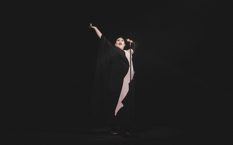Dans le Las Vegas des shows clinquants, un « oratorio techno » chanté et dansé par Marlène Saldana, à partir du film culte Showgirls de Paul Verhoeven qui suit le personnage de la danseuse Nomi Malone. Une revanche féminine, portée par un humour ravageur. Tout part de Showgirls, incompris à sa sortie en 1995 et « l’un des pires films de tous les temps » (ironie de la bande-annonce), puis devenu l'œuvre fétiche que l’on sait, notamment auprès de la scène drag. Sous un lustre géant et suggestif, Marlène Saldana gravit avec autodérision un volcan de carton-pâte, dépliant les scènes cultes d’un film qui fait son nid à Las Vegas, dans le milieu des shows pompe à fric où des producteurs sans scrupule réduisent les danseuses à des objets sexuels.