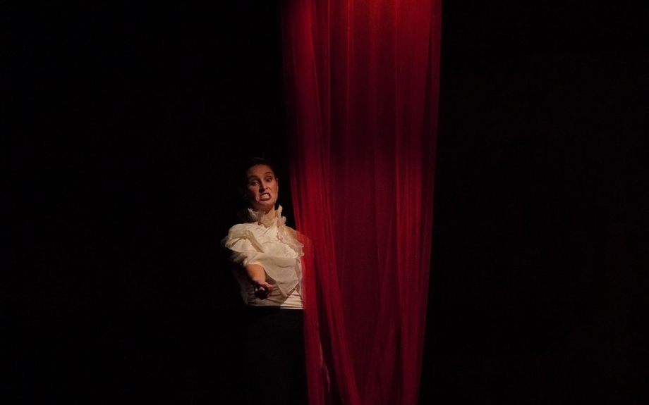 Dans Soliloque en 415, une femme — chanteuse, actrice, mannequin, sorte d’icône à la blondeur anachronique — débute un récital de chant lyrique. Rapidement, son chant cède la place à un soliloque vertigineux où elle nous invite, avec ironie, à découvrir la vitrine des images que l’on projette sur elle et son art du drapé. Seule en scène, elle tente d’échapper aux regards qui la scrutent. Derrière les images, il y a le gouffre.