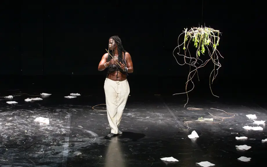 Nadia Beugré entame un voyage solitaire vers Yikakou, village disparu de son enfance en Côte d’Ivoire, dont les terres dites maudites sont englouties par la forêt. Dans cette nouvelle création, elle mêle mémoire collective et souvenirs intimes.