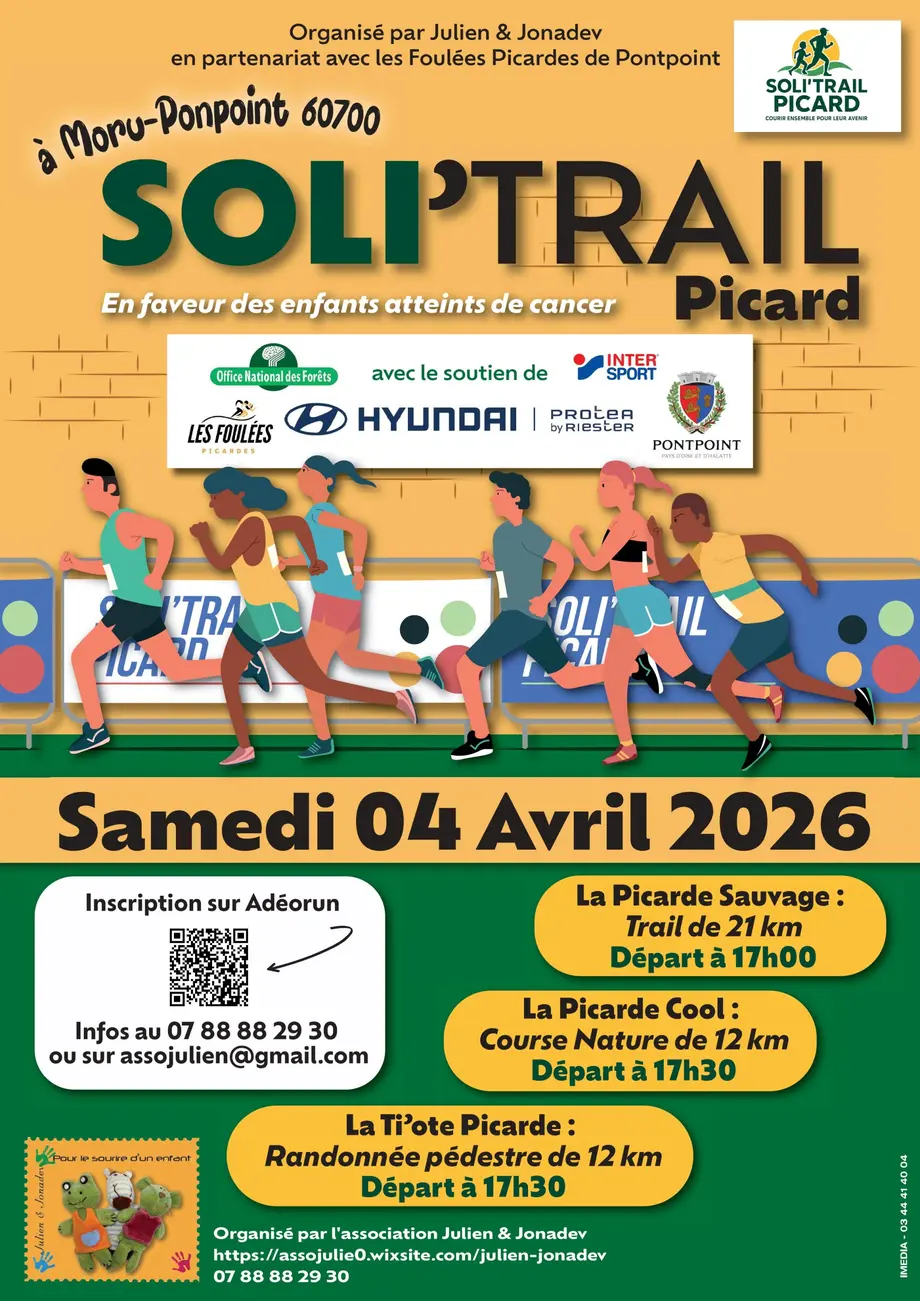 Participez au Soli'Trail Picard le 04 Avril prochain à la salle de Moru-Pontpoint rue des sablons(60700) !